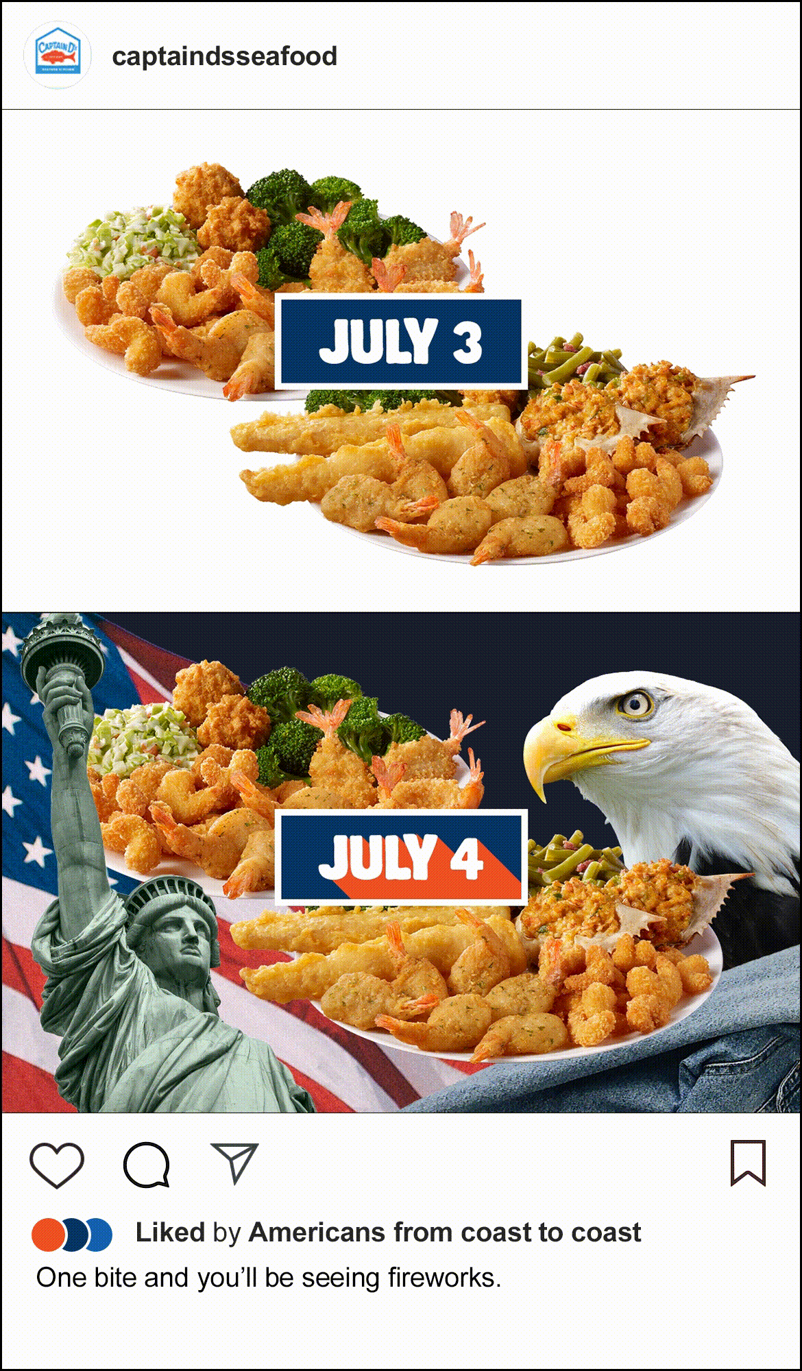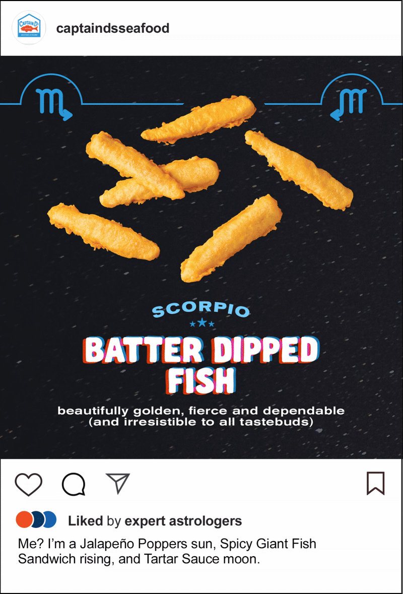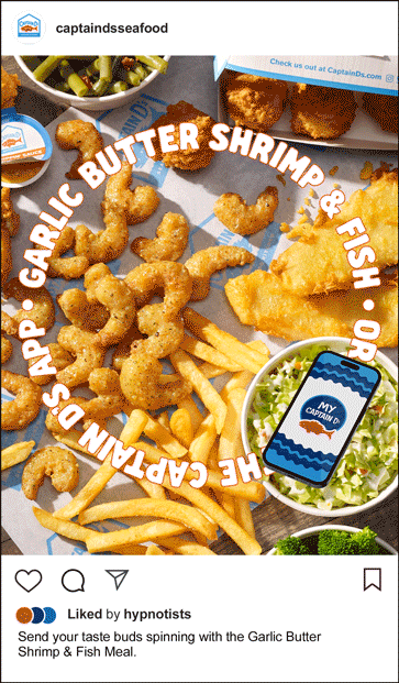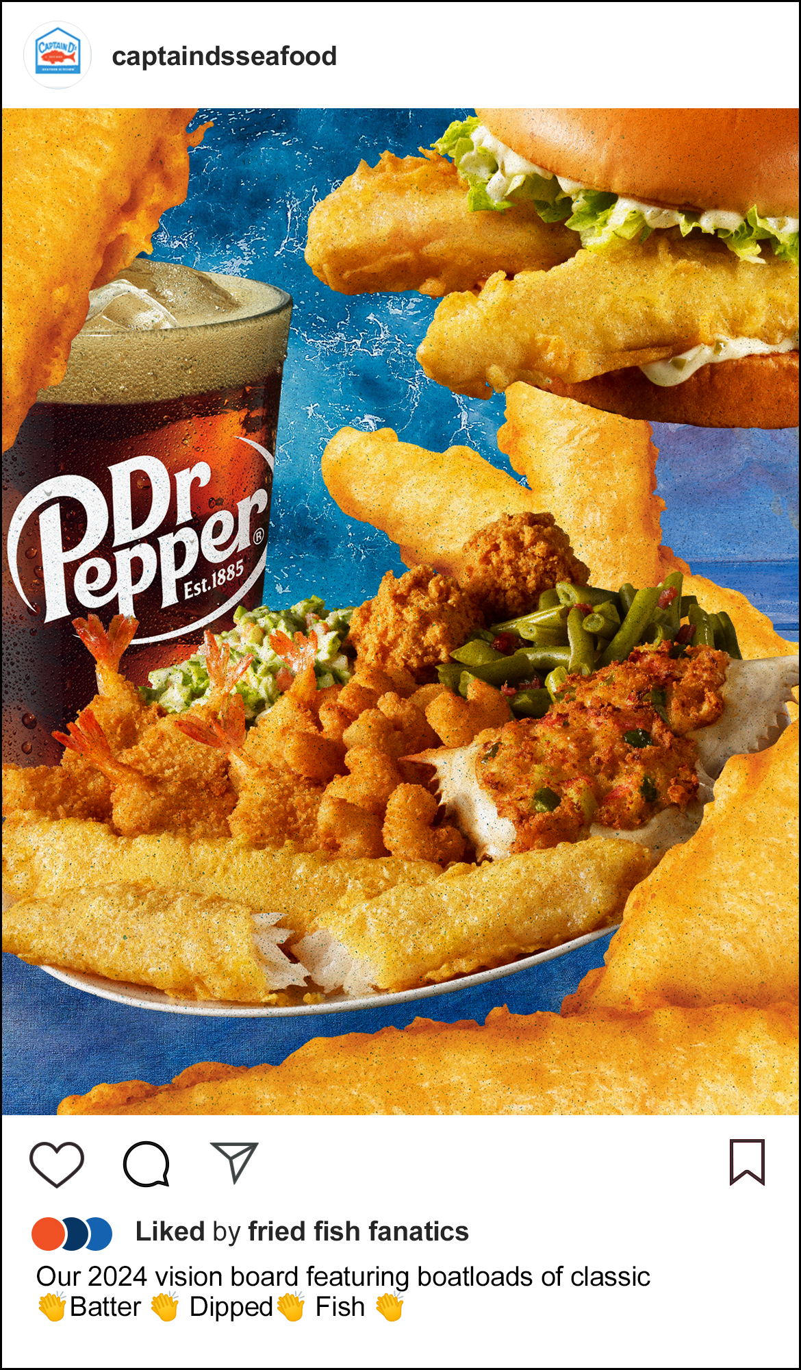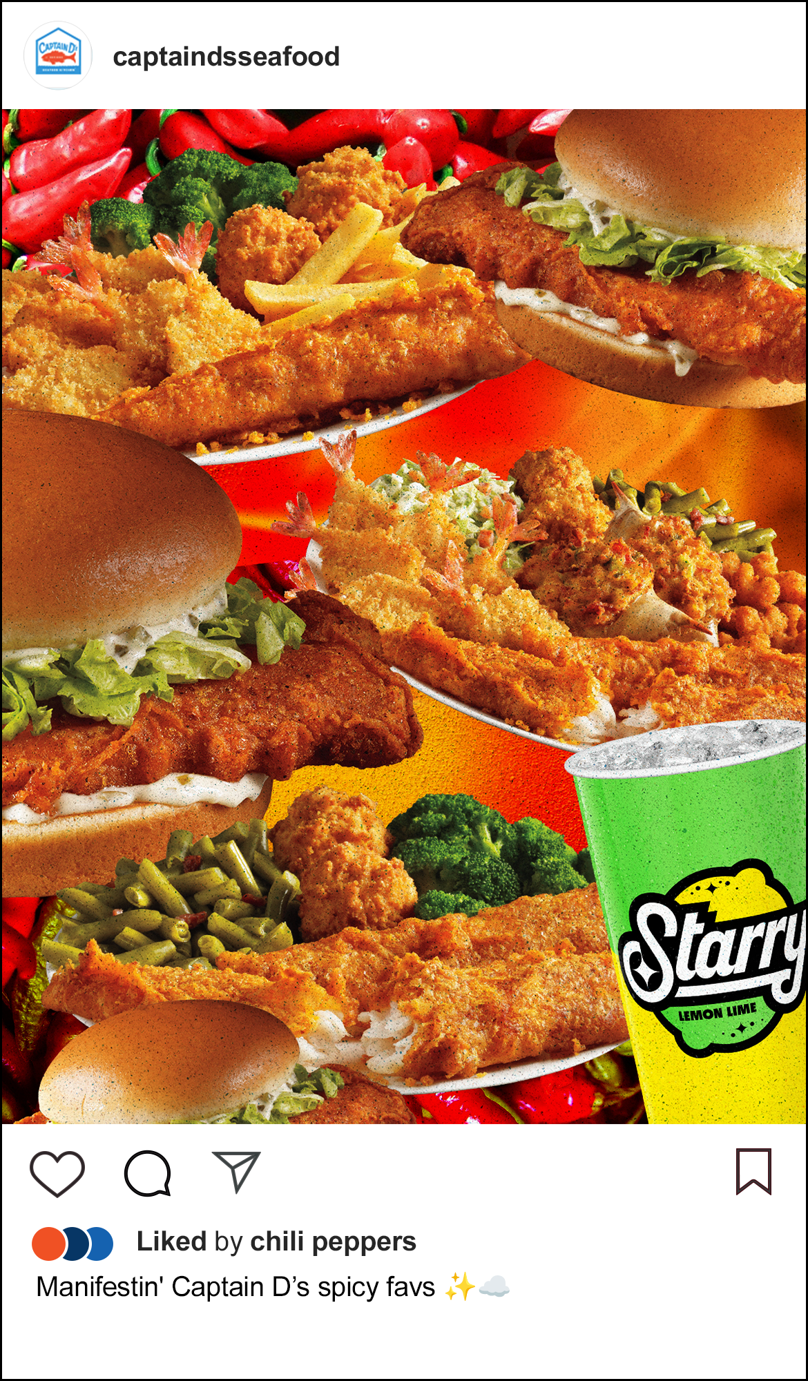 Social media posts for Captain D’s — some animated, some static, all filled with fish.